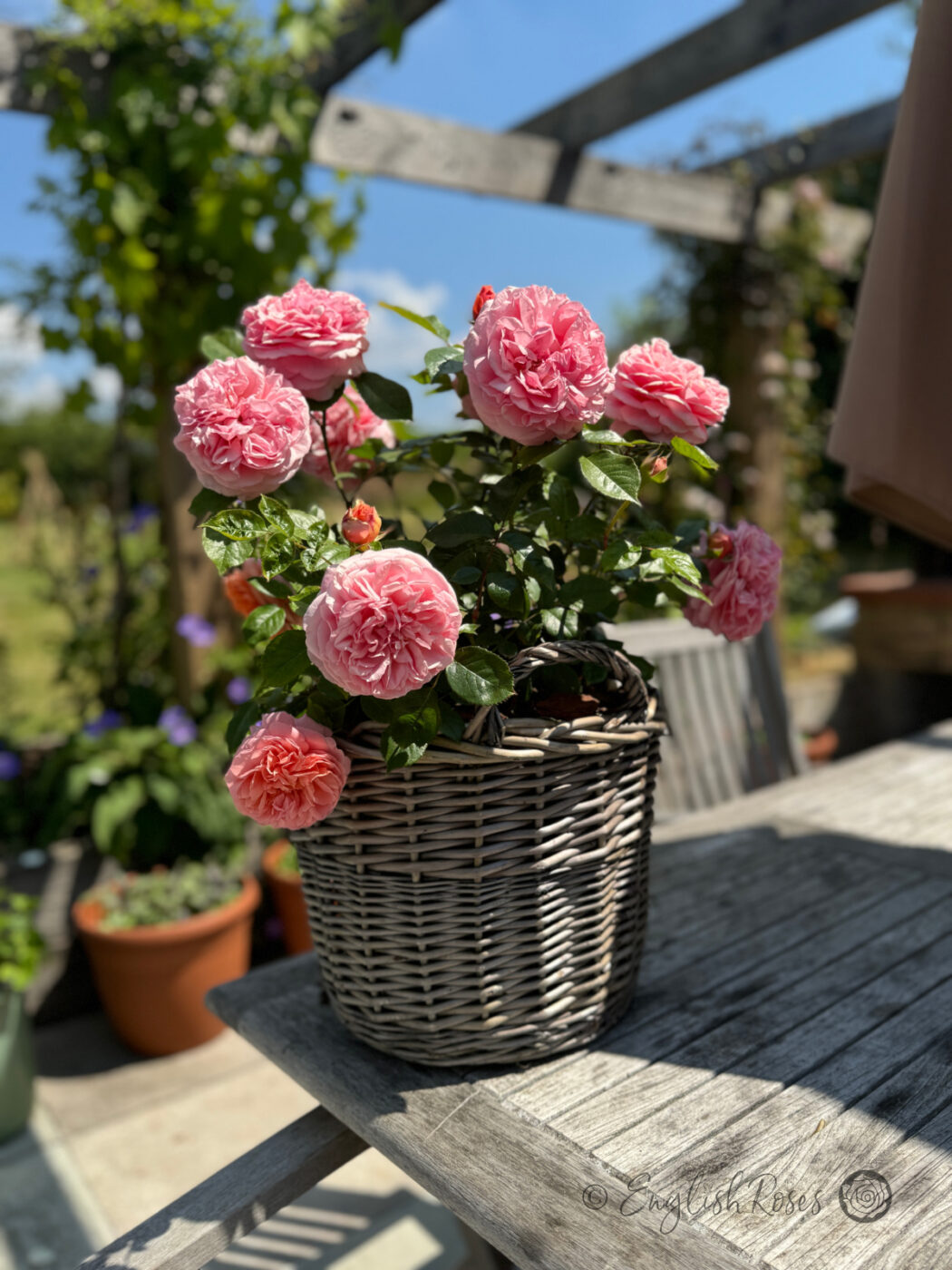 Get patio ready roses delivered straight to the door with these expertly gift planted roses. Our exclusive planting service takes the rose of your choice and plants it in this beautiful large willow basket, perfect for a hassle-free gift.
