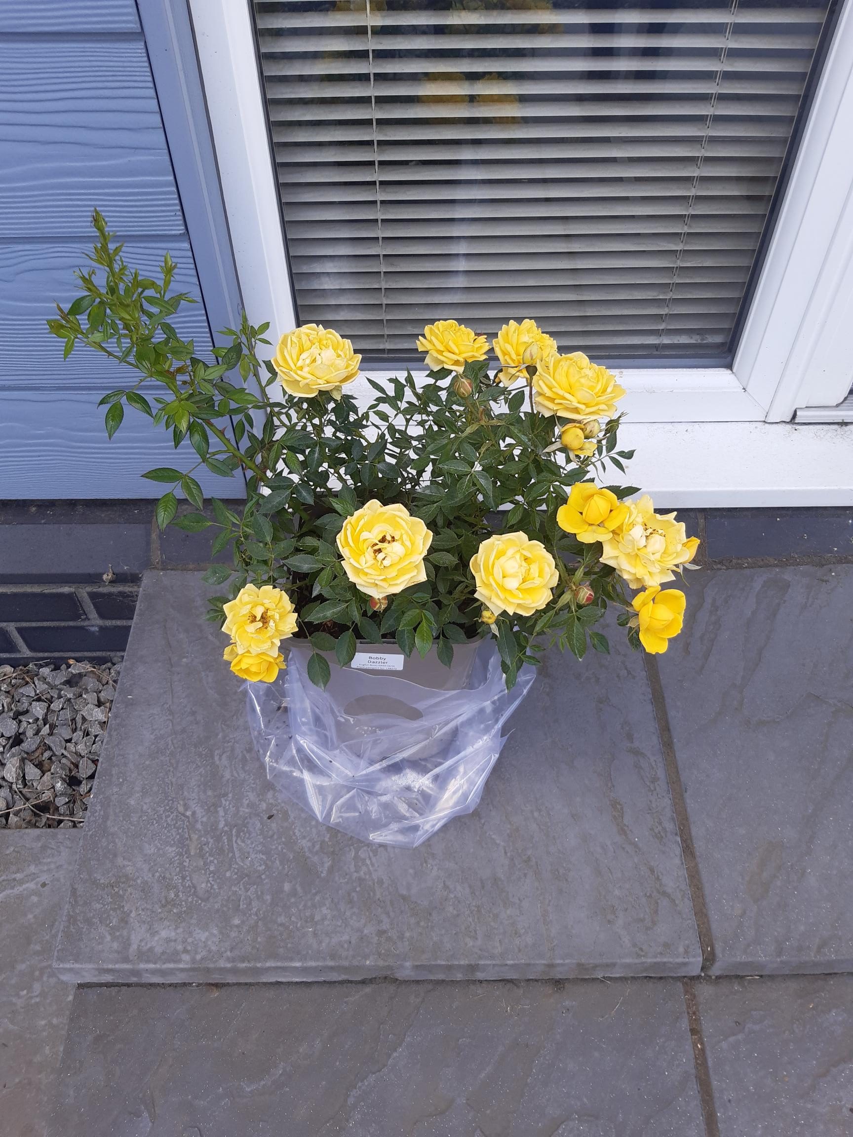 Where can I buy Bobby Dazzler Rose? English Roses provides high quality roses in large 5.5L recyclable pots, with tracked UK delivery. With sustainable gift wrap options available, and select your own delivery date at checkout, this really is gifting made easy! Treat yourself or your loved one to a stunning Strong vivid-yellow rose and order your Bobby Dazzler Rose today, for years of glorious summers ahead!