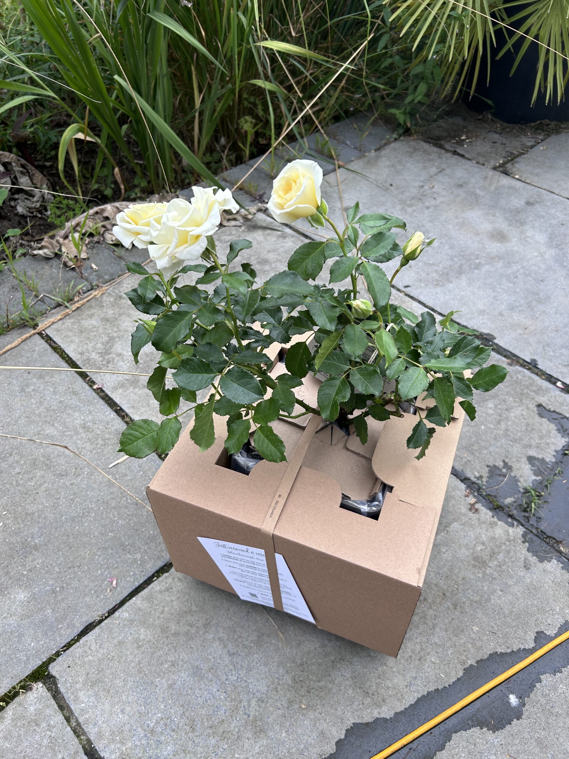Your rose will be in a large 5.5L container, which is recyclable and thus can be disposed of accordingly in your home recycling bin.