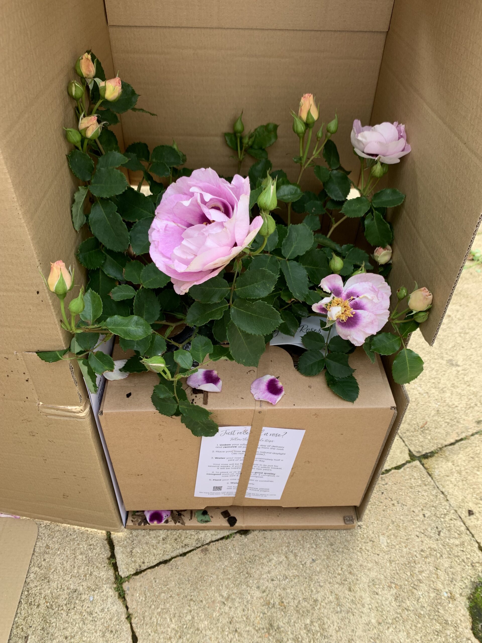 Our standard container is 5.5L, or there is the option to upgrade to our large willow basket for a patio ready gift! All roses (except bare root) will be securely packaged into our specially designed box, and are delivered via DPD. More information on sizing and delivery can be found in our help guides.