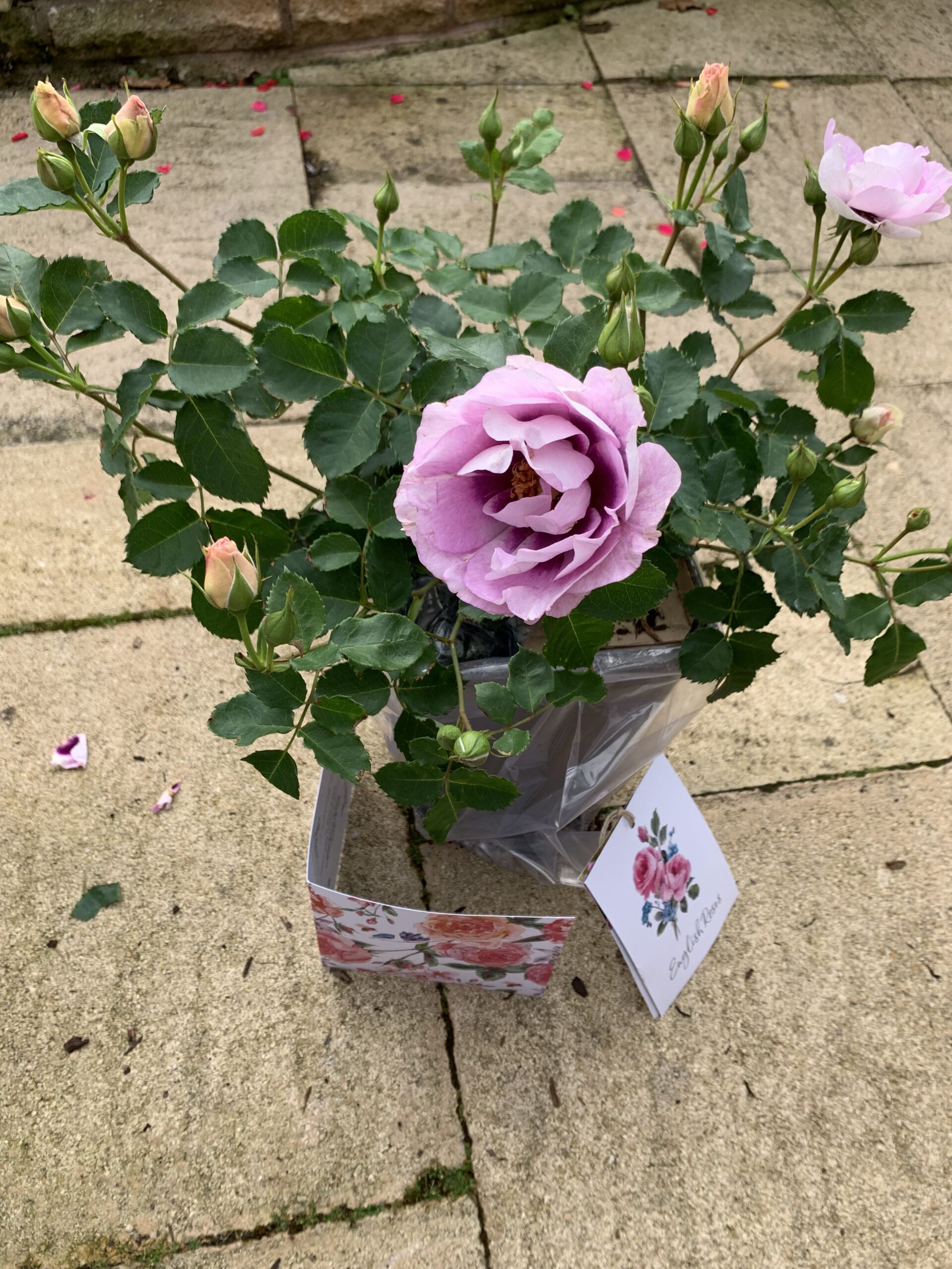 Your rose will be in a large 5.5L container, which is recyclable and thus can be disposed of accordingly in your home recycling bin.