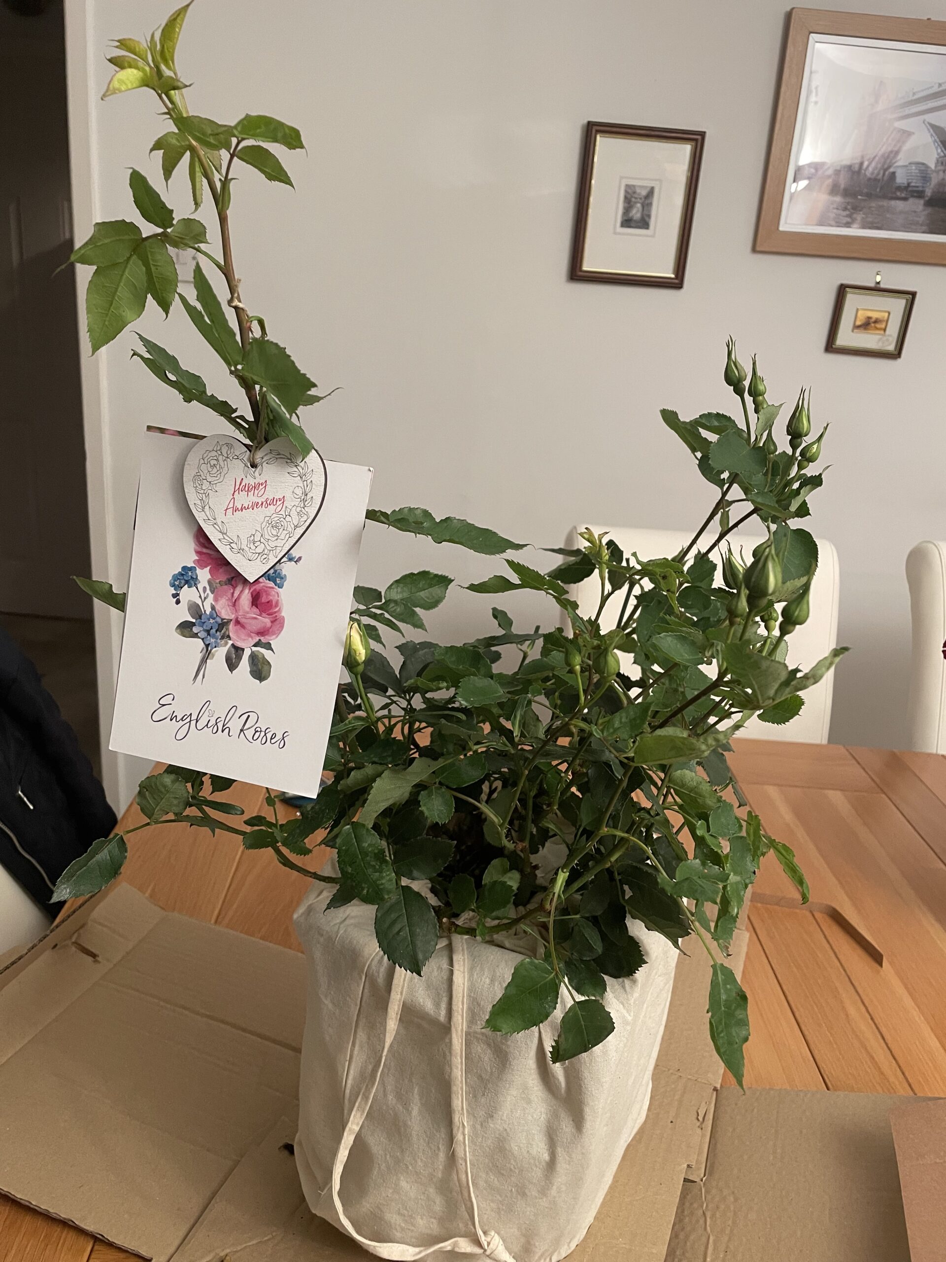 What makes a good eco-friendly 60th Wedding Anniversary gift? Eyes For You Rose - 60th Wedding Anniversary Gift makes a wonderful eco-friendly gift that will bloom for years to come. Still thriving long after the bouquets have faded, a living rose has a positive impact on the environment. Here at English Roses, we also take care to be as sustainable as possible and so avoid single use plastics. Our packaging is therefore fully recyclable, even down to the strapping on our cardboard boxes. Our gift wrapping also contains natural materials, many of which can be repurposed and reused.