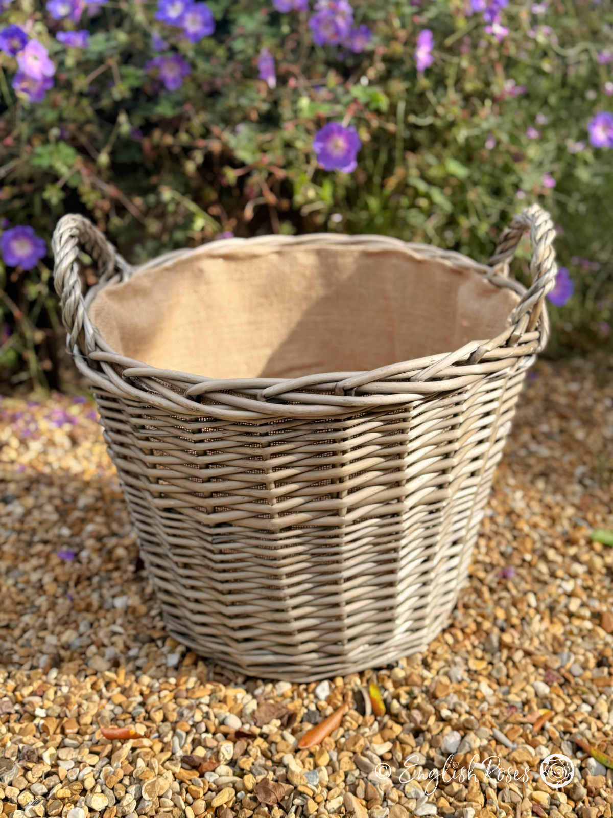 This extra large eco garden planter would make a lovely addition to any outdoor space! Made from top quality willow and lined with natural hessian, this beautiful planter is perfect for patios, decking, courtyards and doorsteps. Hard-wearing and durable, this wicker basket is designed to withstand the weather. With sturdy handles it’s easy to transport, and with a capacity of approx 24L its large enough for replanting roses that have outgrown their 14L willow basket. The rustic design and natural materials of this eco garden planter perfectly complement the natural beauty of roses, adding a cottage-style feel to your garden.