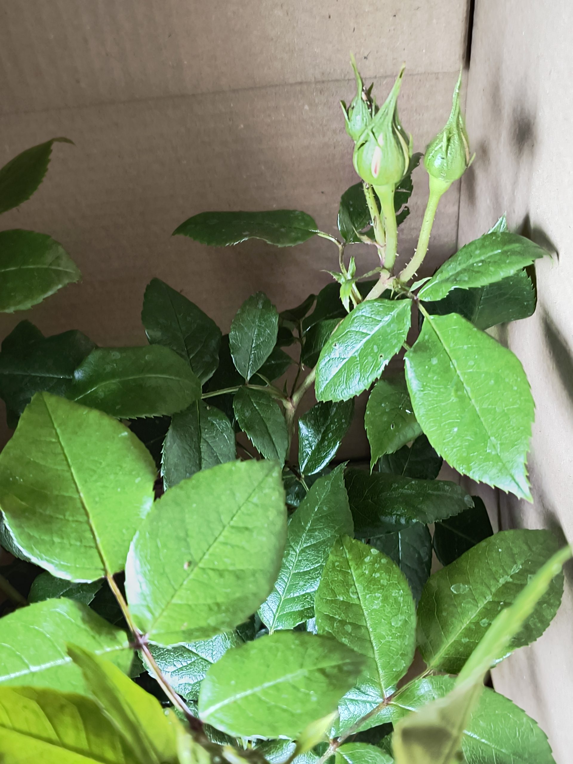 As spring arrives and the weather warms, roses will be emerging from dormancy and starting to grow. Their stems will have been lightly pruned to encourage new growth, and leaves may start to appear. Roses grow at different rates, depending on variety, age, and weather conditions. Roses still need to be kept outside even if the temperatures fall.