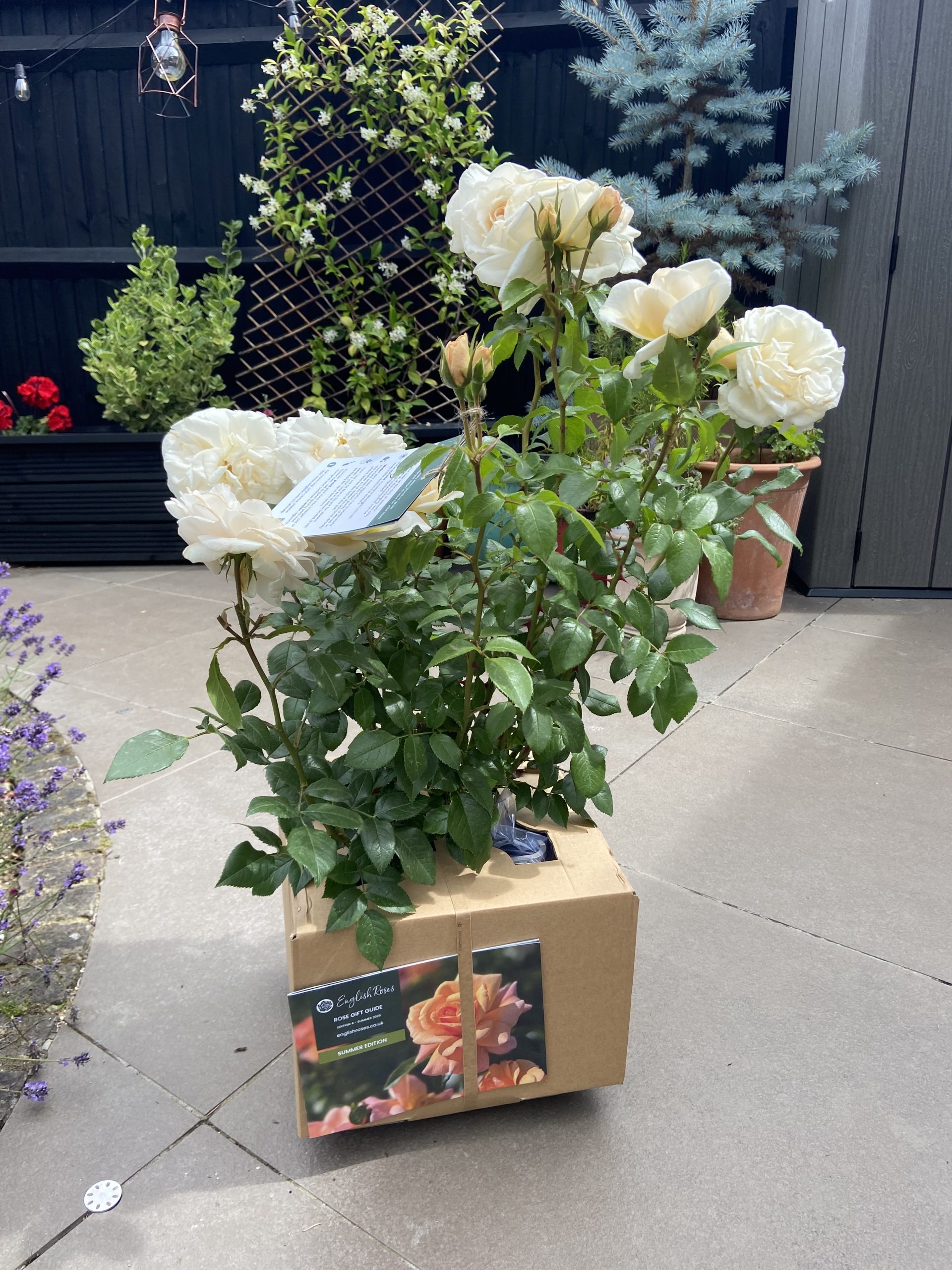Our standard container is 5.5L, or there is the option to upgrade to our large willow basket for a patio ready gift! All roses (except bare root) will be securely packaged into our specially designed box, and are delivered via DPD. More information on sizing and delivery can be found in our help guides.