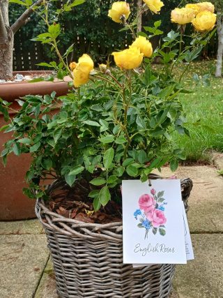 Can I get my Golden Wishes Rose planted in a container? All our potted roses are in large 5.5L recyclable pots, or you can choose to have your Golden Wishes Rose planted into our beautiful willow basket ready for gifting.