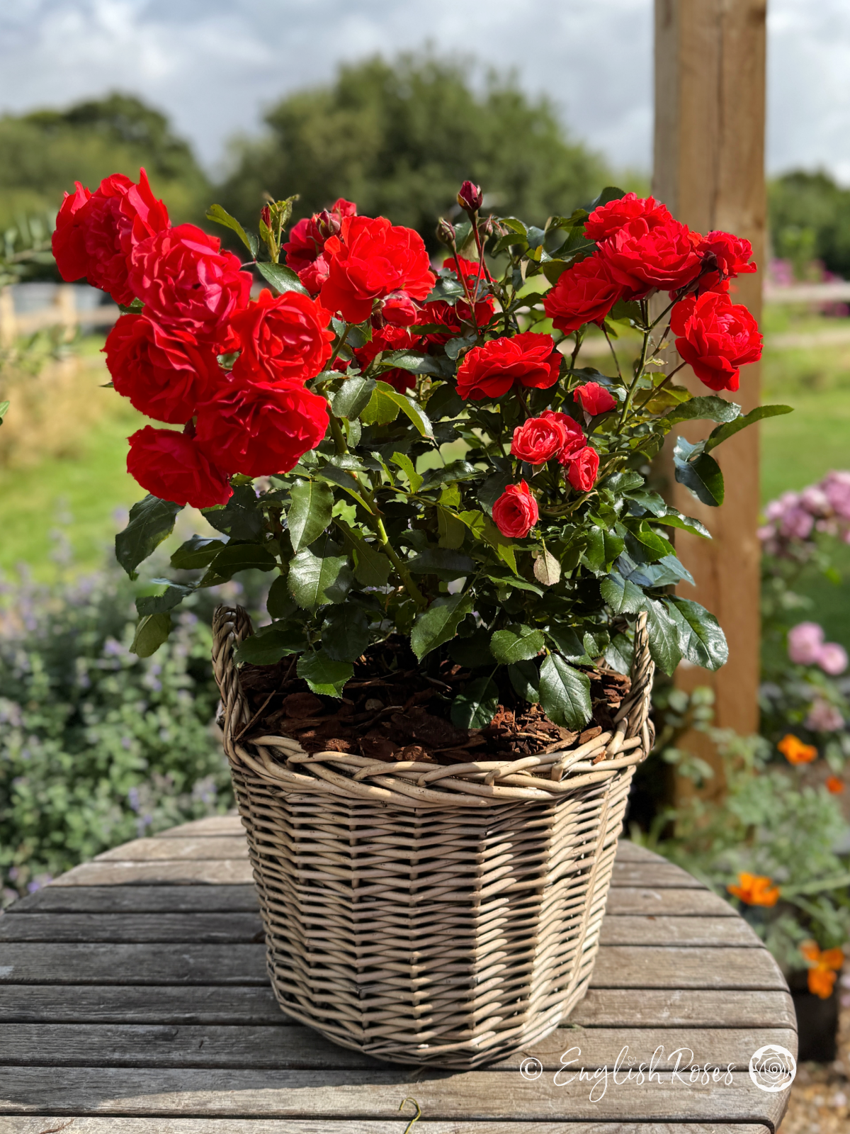 Trumpeter Rose makes a striking choice for silver wedding anniversary gifts, bursting with vivid scarlet red blooms that brighten any garden. Each spring, ovoid buds open into bright, cup-shaped flowers that continue to bloom repeatedly through to late autumn. Delicately scented and weather resistant, the flowers stand out beautifully against a backdrop of glossy green foliage, creating an eye-catching display that lasts for months.
