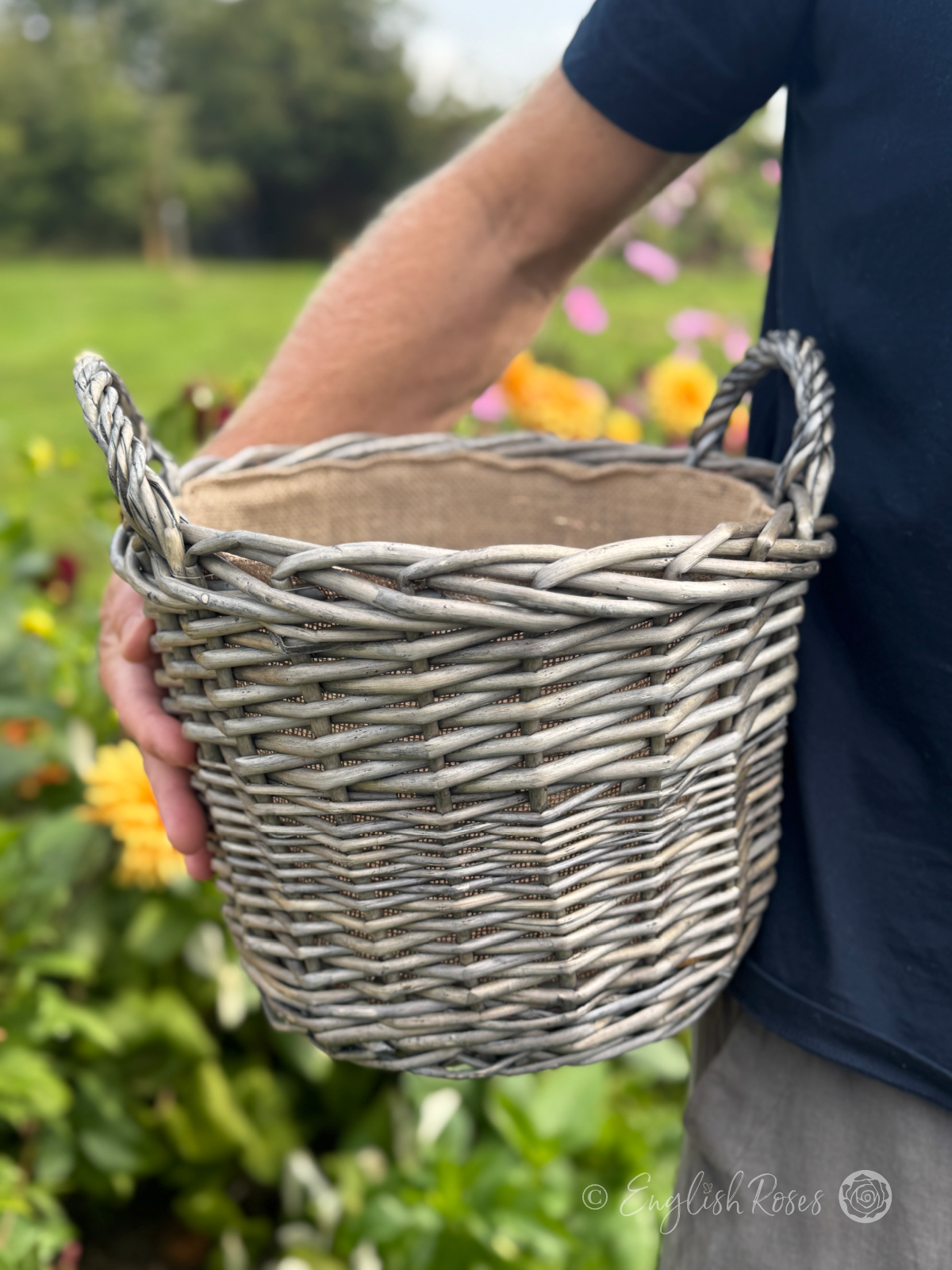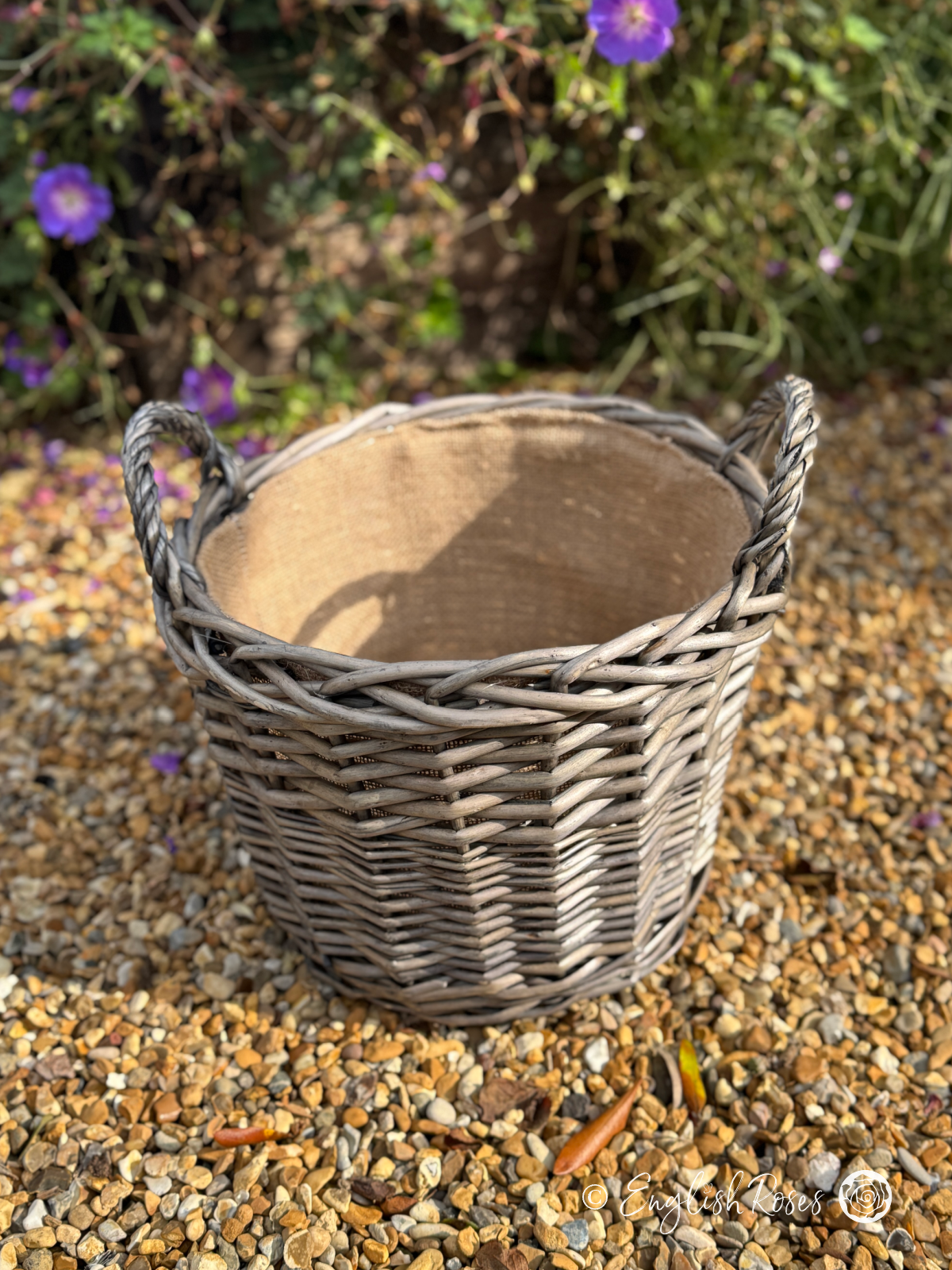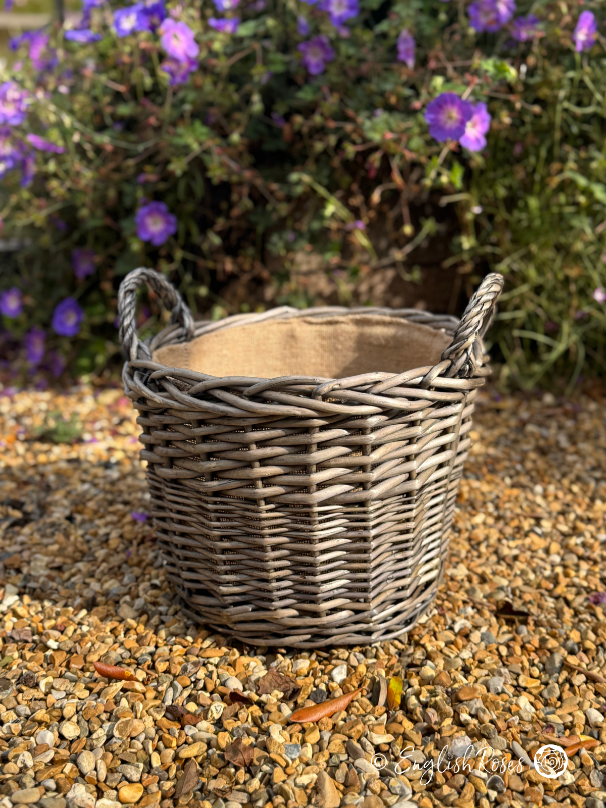 Ideal for patios and decking, courtyards and doorsteps, this hard-wearing planter is designed to withstand the weather. Made from top quality willow and lined with natural hessian, this large gift basket is ideal for planting your rose gift. Large enough to hold a rose in full bloom and make a statement, yet easy to transport with its durable design and sturdy handles. At approx 14L, this basket can therefore provide all your rose needs for 1-2 years with no replanting necessary, making it the simplest way to get instant outdoor colour.
