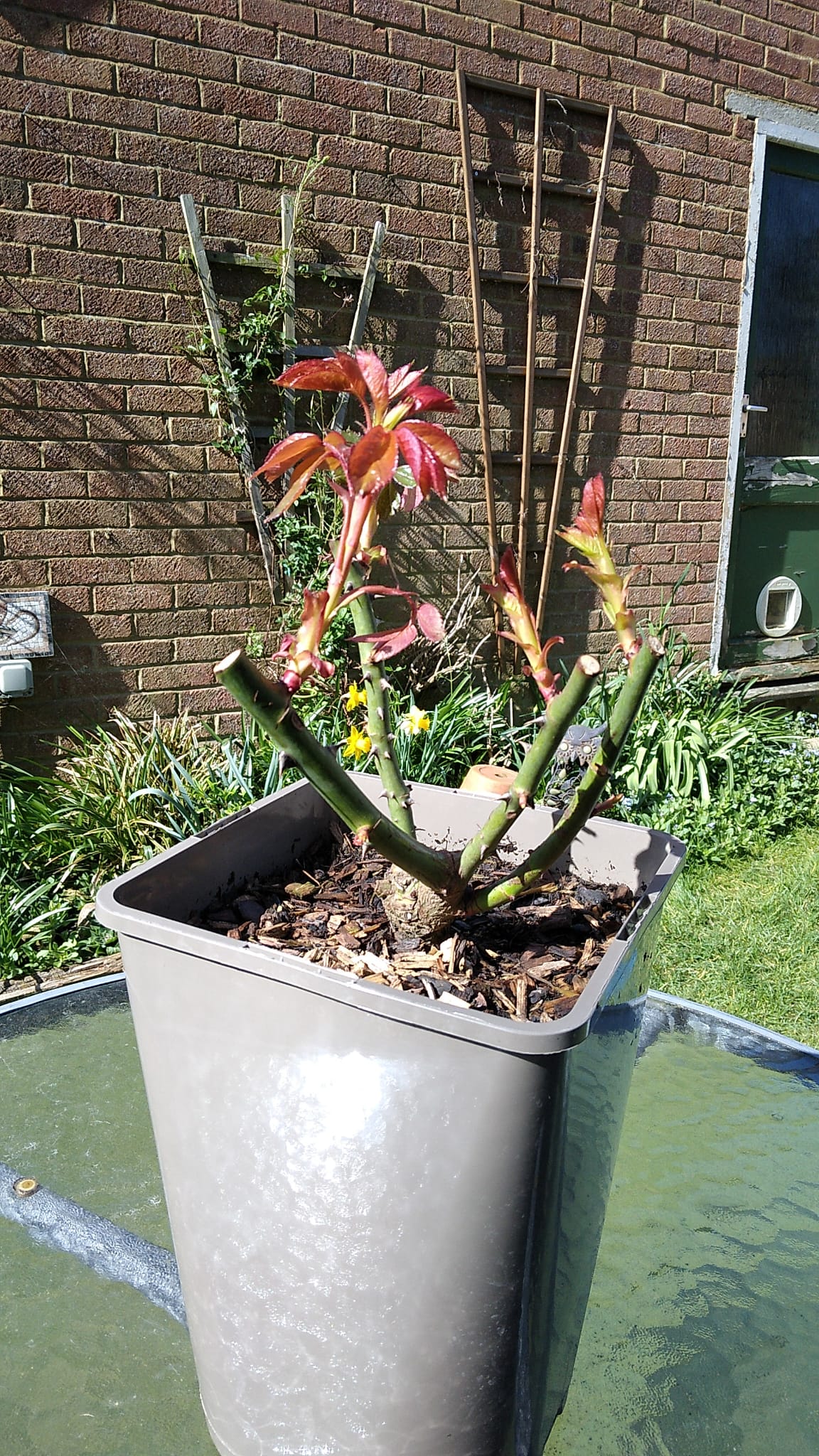 As spring arrives and the weather warms, roses will be emerging from dormancy and starting to grow. Their stems will have been lightly pruned to encourage new growth, and leaves may start to appear. Roses grow at different rates, depending on variety, age, and weather conditions. Roses still need to be kept outside even if the temperatures fall.