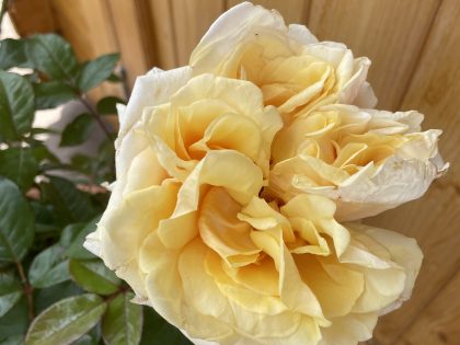 - Creamy yellow double flowers