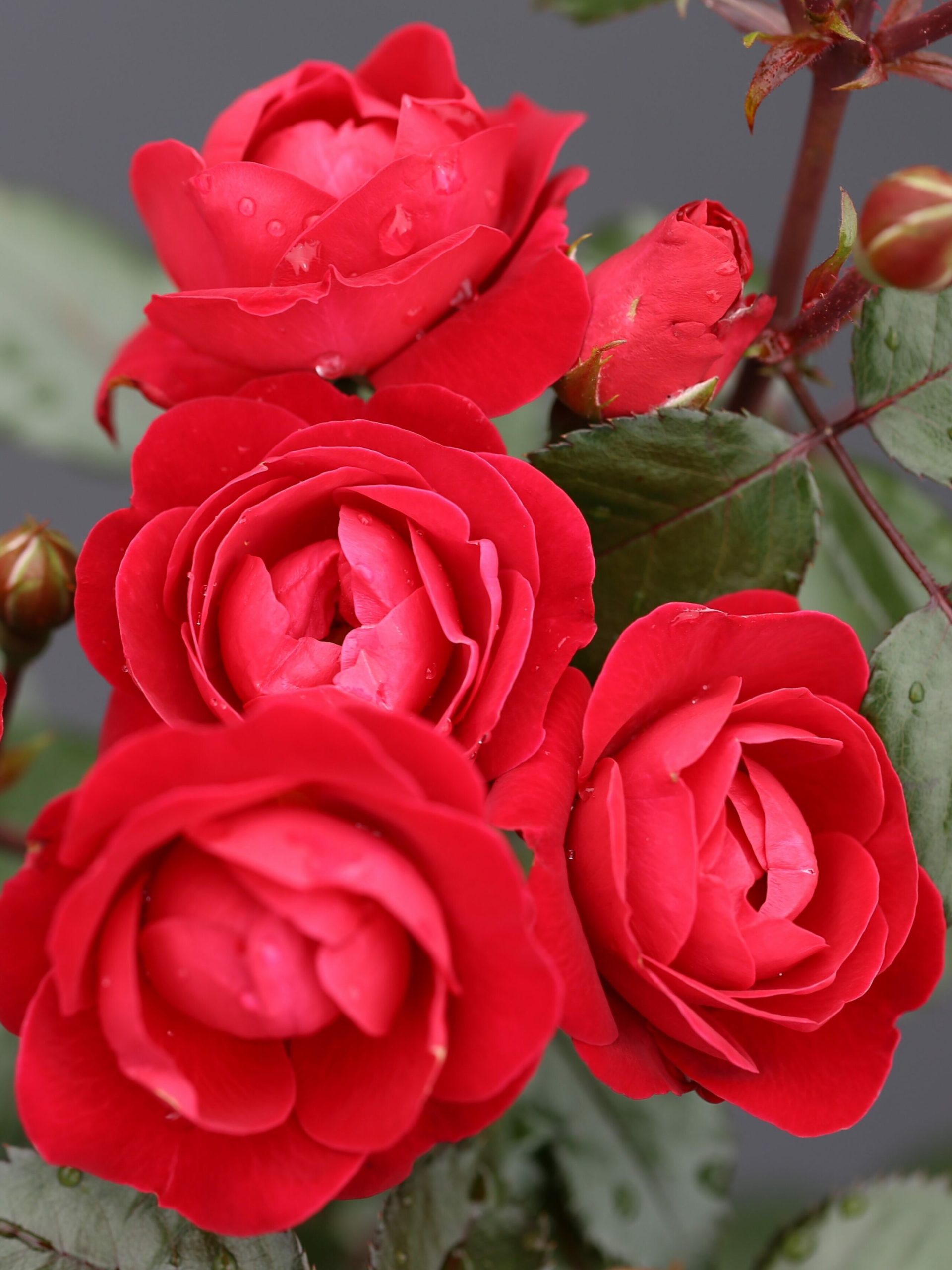 As spring arrives and the weather warms, roses will be emerging from dormancy and starting to grow. Their stems will have been lightly pruned to encourage new growth, and leaves may start to appear. Roses grow at different rates, depending on variety, age, and weather conditions. Roses still need to be kept outside even if the temperatures fall.