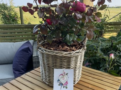 Expertly planted in English Roses exclusive large willow basket, this scented rose gift for Mum is sure to be cherished! Ideal as a hassle-free gift, it brings instant life to any outdoor space. The large size gives your planted gift for Mum all it will need for up to two years, with top quality compost and premium slow release fertiliser already added. Durable and hard wearing, it is designed to be outside and withstand the weather along with your rose. Large enough to make a statement, yet easy to transport with its sturdy handles, it is perfect for patios and decking, courtyards and doorsteps. Make your Fruity Parfuma Rose stand out with this gift ready, planted rose for Mum only from English Roses!