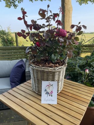 Choose this scented rose gift for mum that she is sure to treasure for a lifetime! Expertly planted in English Roses’ exclusive large willow basket, the variety known as ‘Fruity Parfuma Rose’ will be ready to bring instant life to any outdoor space with its glorious colour and heavenly fragrance.